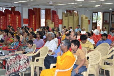 The program got off to a great start with the lighting of the lamp by Br.Avyayamrita Chaitanya, the head of the Mumbai Ashram centre. Addressing the audience that comprised of the parents of the program participants, Swamiji spoke of how, in ancient times, value education imparted by the guru or teacher to his shishya or disciple was part of the formal education. The Amrita Bala Kendra is a medium whereby the essence of our ancient scriptures can be imparted to young children, he said.