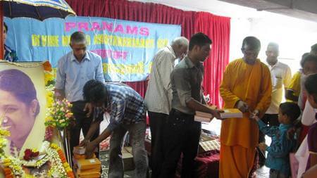 At the conclusion of the Puja, as a small but significant act of charity, school notebooks were distributed amongst the children of the local poor. The program came to a close at about 1.00 p.m.with the Maha Arati after which everyone assembled were treated to a sumptuous lunch.