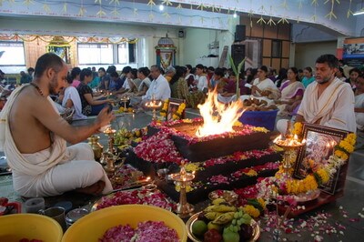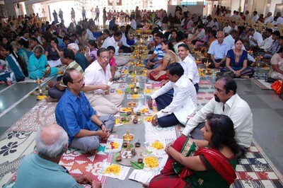 After the conclusion of the Mahamrityunjaya Homam, lunch was served to all the devotees present. The Lalita Sahasranama Archana commenced once again.