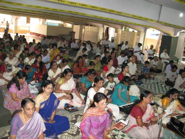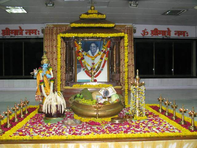 The first day of the Malayalam New Year, Vishu, was celebrated on April 14, 2012 , at the Mumbai Ashram.  In adherence to tradition, a rich spread of the ‘Kani’, consisting of a variety of fruits, vegetables,   the ‘Nava daanyam’ (nine varieties of grains) and the ‘konna’ flowers (golden showers), which are an integral part of the Vishu celebrations, enhanced the festive spirit.  A beautiful statue of Lord Krishna adorned the stage.