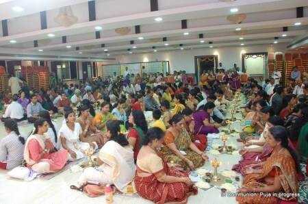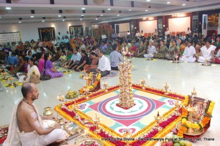 The Shehnai Hall, Thane, was the venue of the Sarvaishwarya Puja conducted on October 29, 2011.   The Puja that has been a regular annual event at this venue, had devotees pouring in from all parts of the city.   A mood of devotional fervor pervaded as everyone joined in the chanting of the Divine Names of the Mother and singing of soul-stirring bhajans.