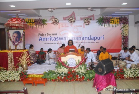 Pujya Swami Amritaswarupanandapuri visited Mumbai in January 2012 and conducted a three-day spiritual program including bhajans, interactive talk sessions and meditation. All three days had the halls packed with devotees scrambling to become part of the enthralling experience.